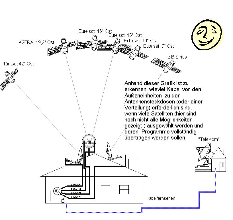 Hier erfolgt eine neue Aufbereitung des Verteilnetzes mit dem Ziel, in jeder Wohnung alle Programme des jeweiligen Satelliten