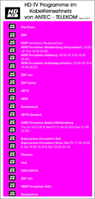 Derzeit stehen ca. 29 analoge TV-Programme und eine
